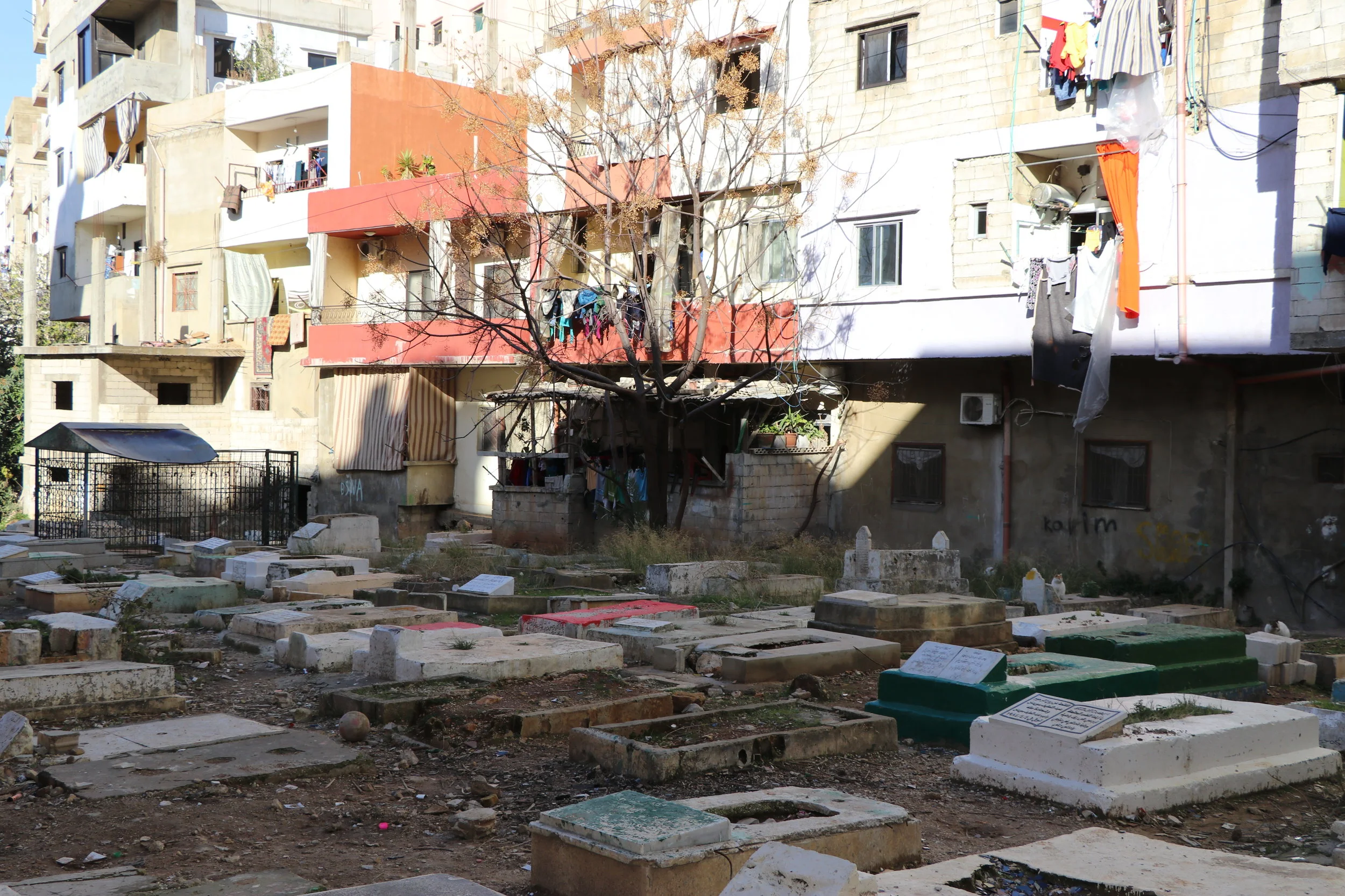 At the core of Baddawi refugee camp, from its very birth, the cemetery has hosted the living and the dead. The arrival of the living to the camp, was traced by the arrival of the dead. From that core, the camp has grown, and so too have its residents. As time has passed, and as wars have led to new arrivals – Palestinians from other camps, Syrians, Kurds, Iraqis… – , the cemetery has outgrown its original space. The camp is denser, higher, narrower. And a second, a third,… now a fifth cemetery in Baddawi, for Baddawi and beyond.